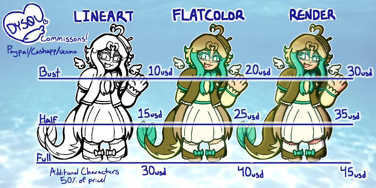 At least half of the total payment will be required before moving onto lineart.4.) After the lineart is completed i will check in with you again to make sure everything is up to your liking. Once it is approved i shall move on to flatcoloring and rendering.